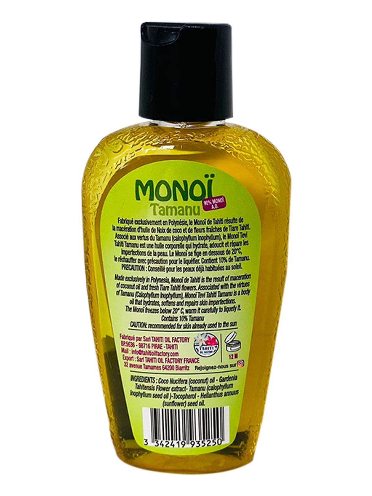 - Matière: Cocos nucifera (coconut) Oil, Calophyllum Inophyllum Seed Oil, Gardenia tahitentis Flower Extract, Tocopherol, Helianthus annuus (sunflower) seed oil